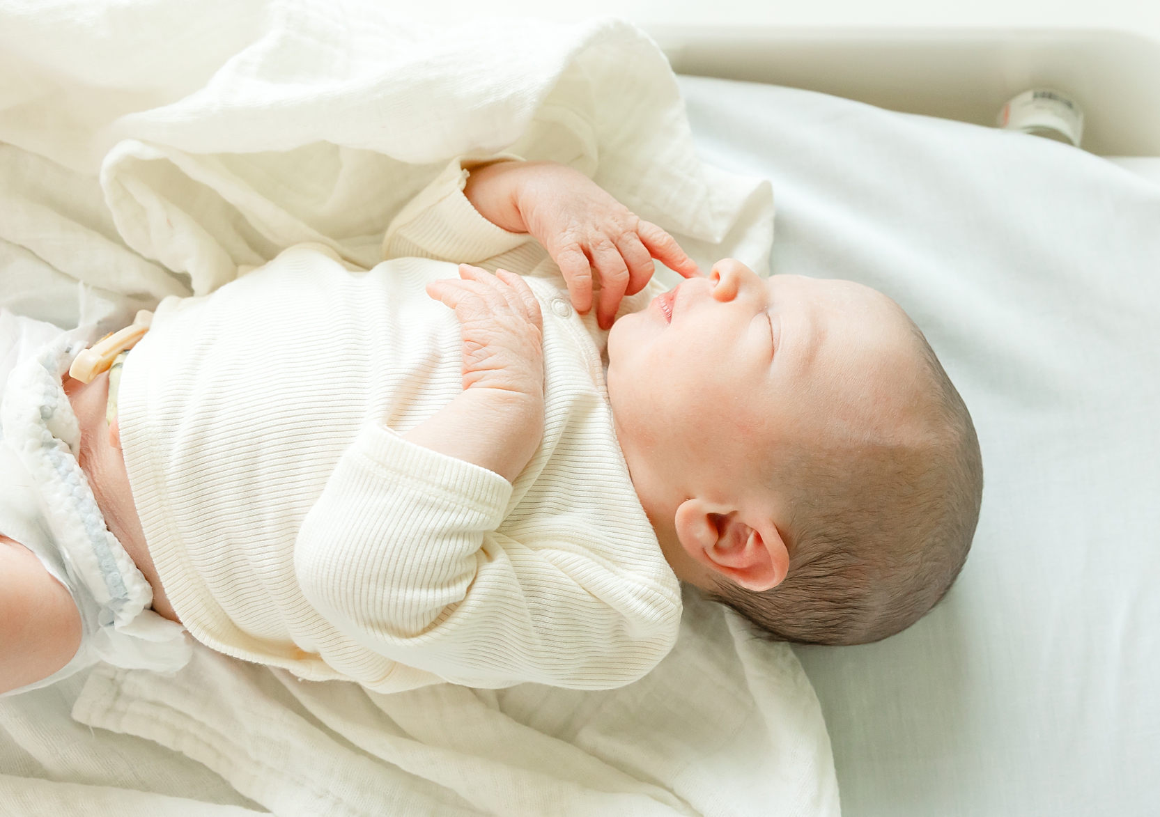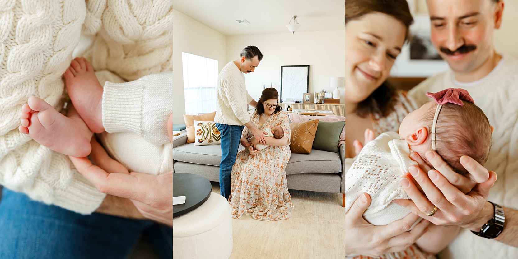 When baby arrived, the in-home session was even more special. You noticed every detail: the nursery room, the crib, knowing where the pacifiers were placed lol, the quiet moments while we changed outfits or paused for a feeding.
